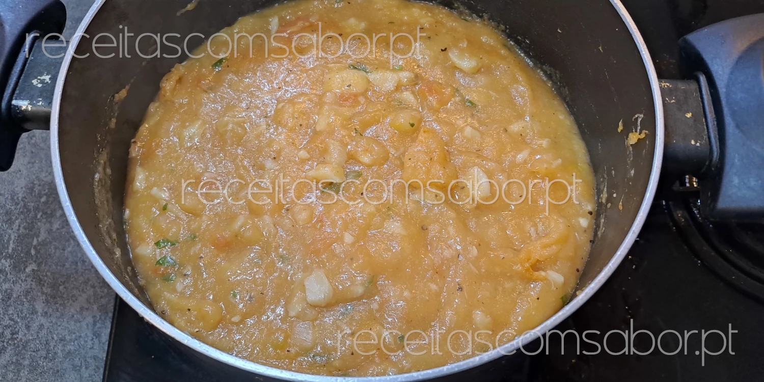 Por fim, acrescente o bacalhau e mexa bem, para a desfazer.